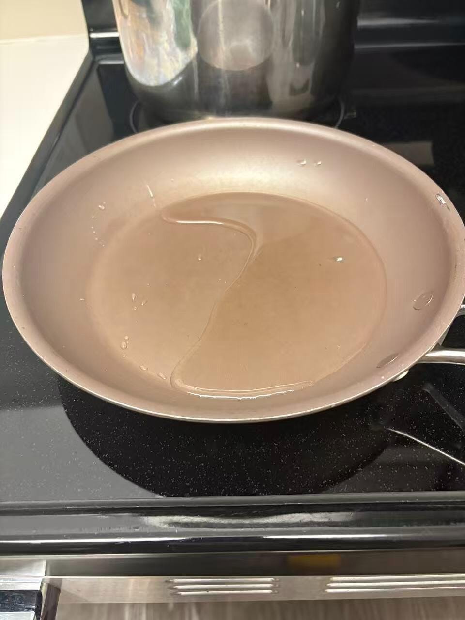 Within months of normal home use, both pans developed a warped base and no longer sit flat on the stovetop. Oil and water collect to one side, causing uneven heating. This is clearly a structural issue rather than normal wear.